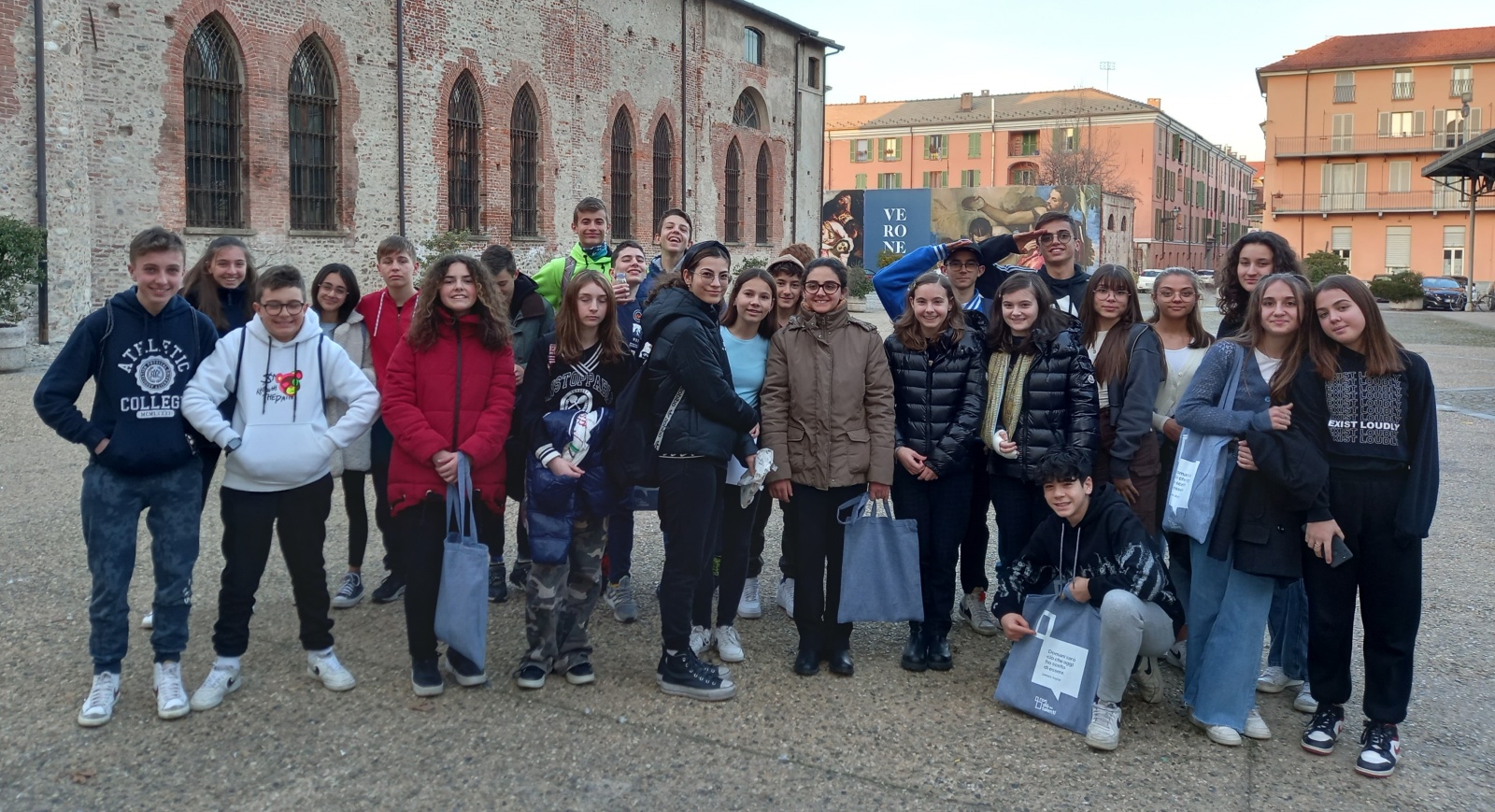 Scesi dall’autobus veniamo divisi dai professori in due gruppi: qualche alunno della classe prima e le classi seconde vanno con il professore Bruno Raspini e la prof.ssa Susanna Coarezza, mentre la classe terza, di cui faccio parte, va con il professore Marco Dalmasso e la professoressa Cinzia Longo.