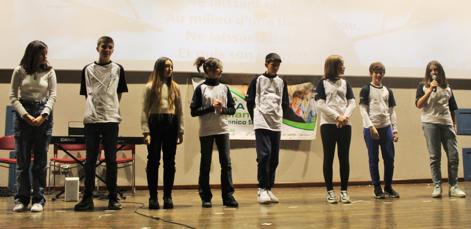 Finalmente, dopo tanti preparativi, il grande spettacolo di Natale era pronto. La capiente sala del Polifunzionale la sera di venerdì 15 dicembre era gremita all’inverosimile, tanto che molti non hanno trovato posto a sedere. Dopo il tradizionale saluto del direttore don Riccardo Frigerio e del sindaco Gianni Fogliato, il Preside ha illustrato con alcuni rappresentanti degli allievi il materiale elaborato sulla tematica della cultura come richiesto dal Sindaco a tutte le scuole della città candidata con Alba e il territorio a capitale della cultura. Il tema è stato arricchito dall’esperienza vissuta da alcuni allievi che si sono recati in visita alla casa di cura dei “Glicini” per incontrare gli anziani e per intervistarli sulla cultura dei loro tempi. A questa visita ne seguiranno altre, inserite in un progetto educativo di volontariato e di dialogo intergenerazionale.